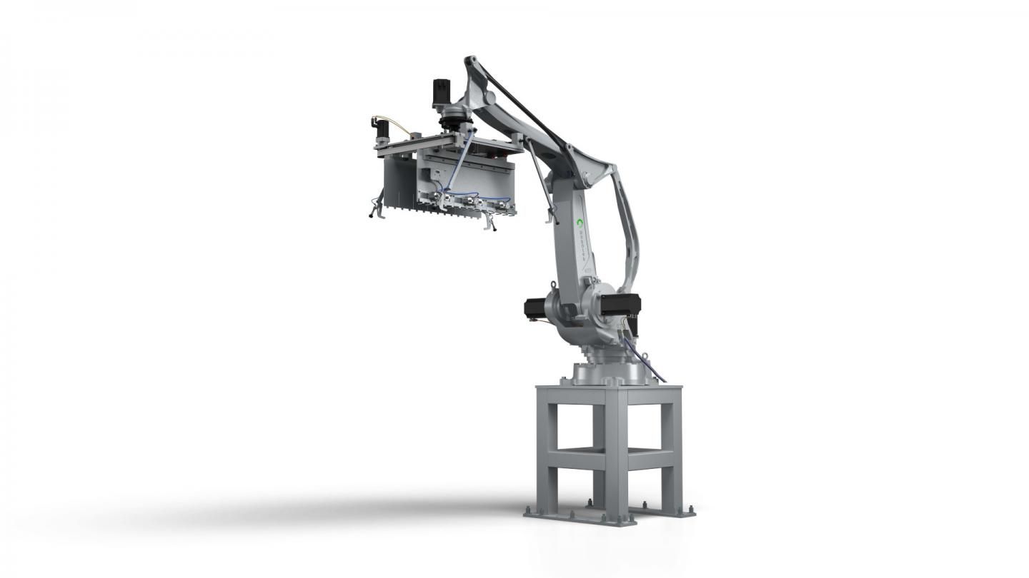 NETTUNO è un Robot pallettizzatore a 4 Assi che presenta una costruzione compatta e affidabile, con ingombri ridotti e un' area di lavoro estesa a 360°, movimentato da servomotori elettromeccanici brushless; questo gioiello dell'automazione nasce da un'innovativa progettazione con componenti di prima qualità, per avere velocità e precisioni elevate.