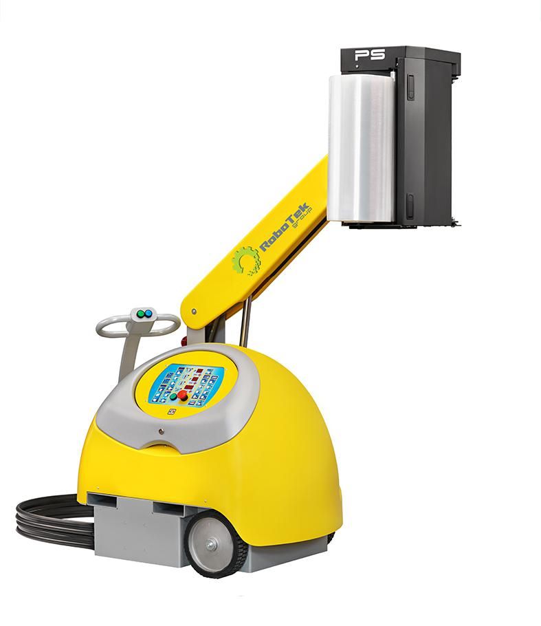 Macchina semovente per avvolgere in meno di un minuto carichi palletizzati di qualsiasi forma, peso e dimensione con film estensibile o film macroforato.